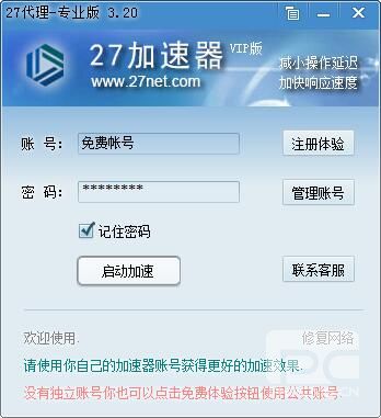 应用27加速器,电信网、网通电信、教育信息网、中国铁通、中国联通、挪动和其他种类的宽带业务都能够得到不一样水平的加速实际效果。