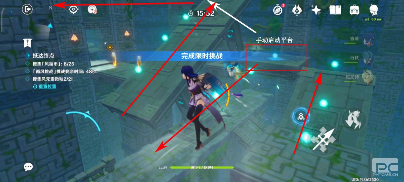 4、按照路线前进即可,注意有两个平台需要手动启动(到达指定位置后会自动范围原位置)