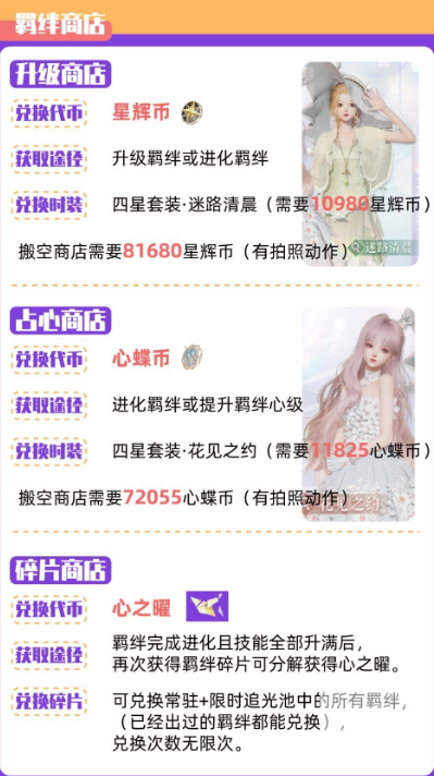 兑换代币:星光币、心蝶币、心之遥