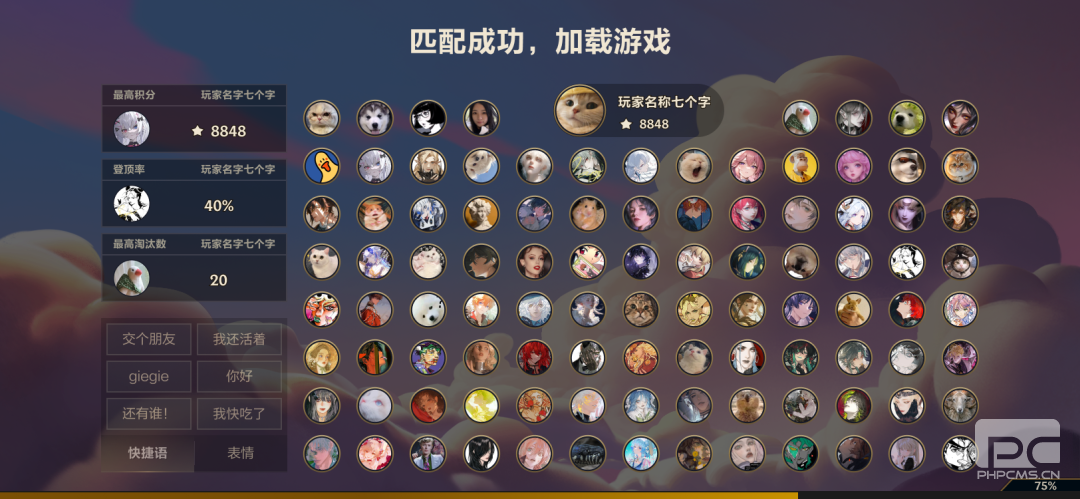 战斗结束后,玩家可以在总览界面查看整体战况,查看对手信息,发送表情和快捷方式进行交互。