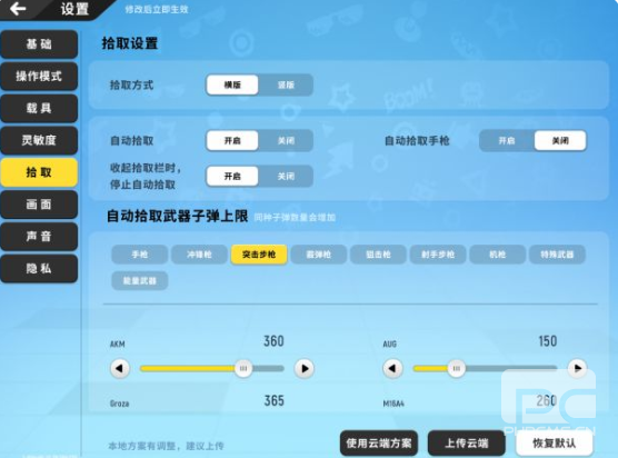 自动拾取各类物资数量设置(达到设置数值,将不再自动拾取该物品)