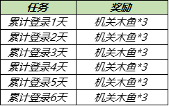 主题活动期内总计登陆6日,一共可得到行政机关木鱼*18