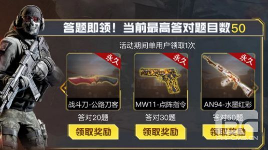 奖赏:AN94-墨笔画红彩 只必须一次性对了50个题就可以了