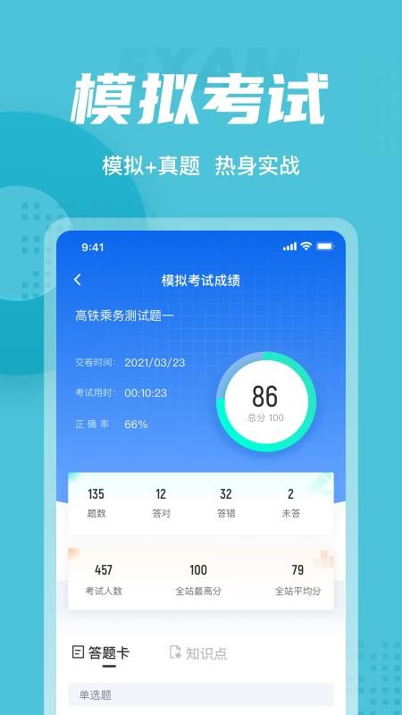 乘务员题库包含考点题库,全国通用卷和地区卷模拟题,还有按固定比例随机抽取的题型实时考场,成绩单实时记录考试数据,一点一点反馈考生近期学习情况和自答率的提高。