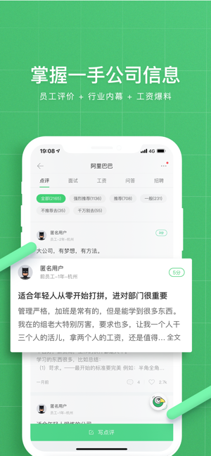 公司内幕:公司实际员工对公司的匿名评价,获得意向公司的内幕信息,了解公司可以选择更好的公司。