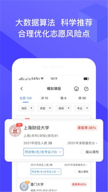 大数据算法,科学强烈推荐,有效提升志愿风险防控措施。