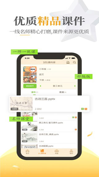6、101课件库:备课教案资源进手机上,随时查询、免费下载、共享教学课件。