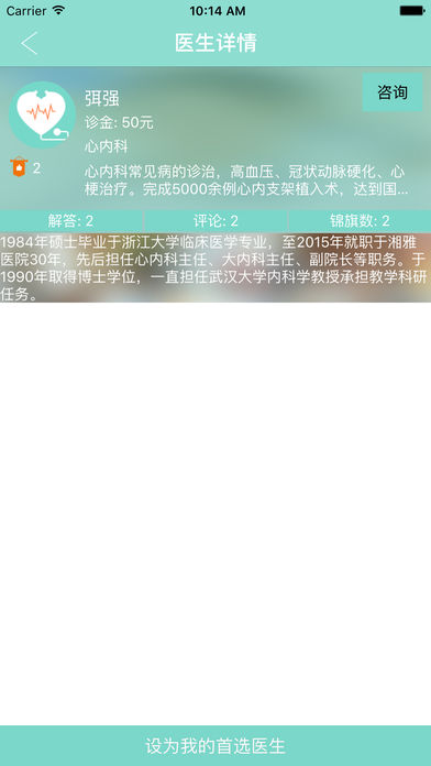 5、在首选医生界面中可以对首选医生进行添加和取消的操作;