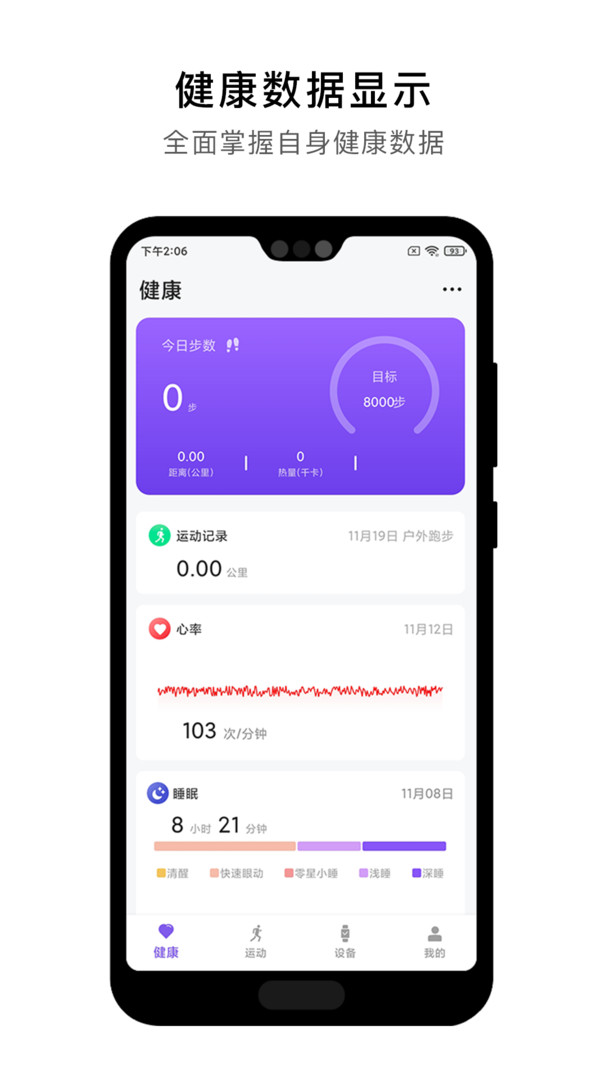 1.记录步数、睡眠、心率、体重、血氧等身体状态数据。