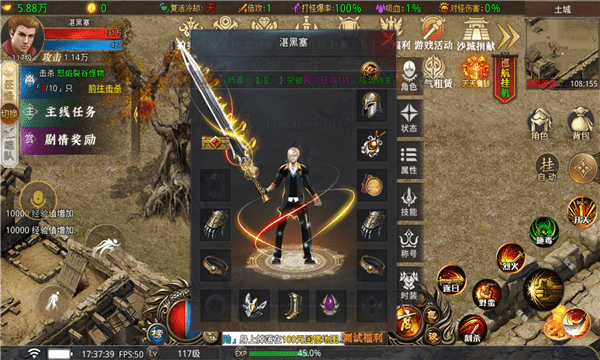 2.经典的战、法、道三职业。玩家可以自由切换。打开世界地图,随时可以玩。