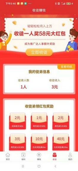 每次你邀请朋友,你的朋友都会立即用提现的方式奖励你,并为永久赚钱的任务打佣金。给自己定一个小目标,每天邀请十个人,赚钱会更容易。