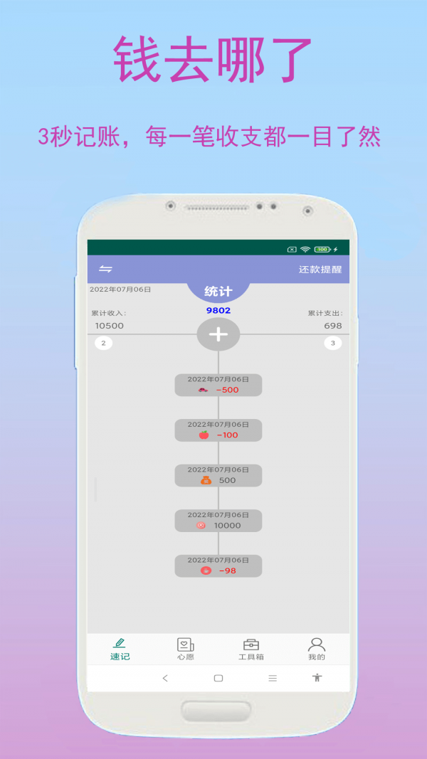 旺财快速记账,这是一款可以随时快速记录我们日常生活中每一笔收入和支出的APP。而且它有自己的统计功能,实时显示当前收支趋势、本月剩余预算、流动资产等数据,让我们及时调整自己的消费习惯,让每一笔钱都花得明明白白,做到资产的科学配置和合理消费。