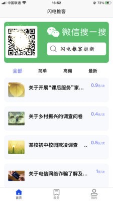 闪电推特app是一个任务奖励平台,包含大量的问卷调查任务。有兴趣的用户可以在平台上进行不同的任务,完成任务后可以获得相应的奖励,让大家可以通过手机做任务轻松获得收入,为自己增加额外的收入来源。 这里的任务非常多,每天都会启动,操作简单易上手。