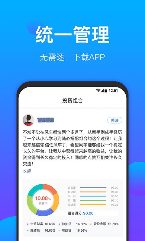 风车严选app给予分散化投资、统一管理方法、组合分析、综合性定级、检测备份数据、经验总结、投资理财学馆等一系列深层第三方服务。
