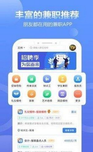 3、兼职的职位十分的丰富多彩,每个不一样的优秀人才在这里都可以展现自身,每一个人都可以挑选到自身心爱的职位;