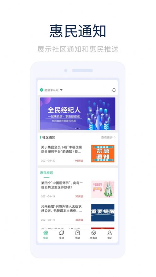 3、便民通告,展现小区通告和便民信息内容,用户能够获得大量內容。