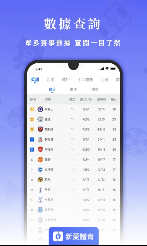 新爱体育是一款专业的足球比赛资讯平台,新爱体育为你提供非常全面的体育赛事资讯信息,在这里用户可以更好的进行体育赛事观看,最新的赛事资讯信息在这里提供给你,用户可以更好的进行体育赛事观看,包含全球热门的赛事信息,放心的在线进行体育赛事选择,满足不同球迷的赛事观看需求,在这里根据自己的需求在线进行赛事选择,随时可以在线进行体育赛事选择,为你带来超多不同类型的体育赛事推荐,感兴趣的用户可以下载体验