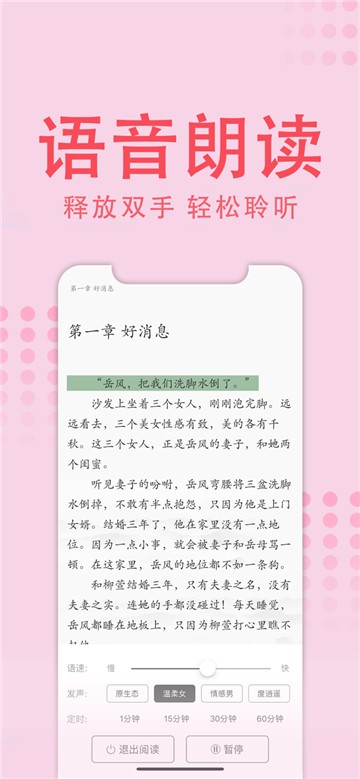 1、精美排版设计、全自动在线听书、色度响应式、多种多样独具特色的阅读页主题风格,每一个阅读姿态都舒适。