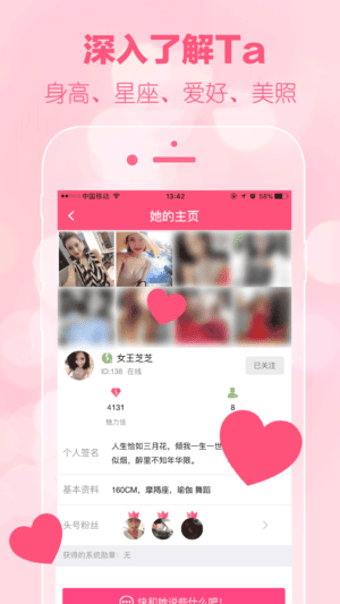 高颜值交友平台! 《》不仅让你在本软件中享受一键快速配对的全新交友方式,还能让你在本软件中尽情撒网,轻松与他约会! 快速下载软件并开始聊天!