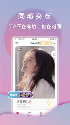 打灯交友app是一款十分高品质的线上交友服务平台,为众多用户产生了更加高品质靠谱的线上交友方法,更加严苛的用户信息内容的审批体制,保证信息内容的安全性真实有效,让众多用户能够更加轻松自在地开展聊天交友,更有主题风格化的聊天话题,用户能够更加轻松自在的参加,用户在这儿能够更强的聊天交友,十分真正的交友自然环境。
