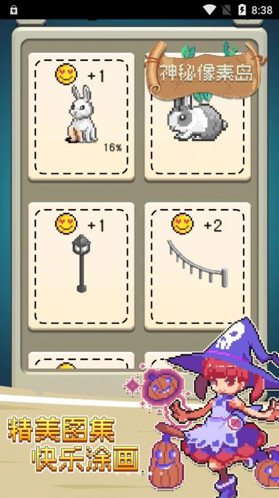 2、让这座岛屿焕然一新,大量的图片库,轻轻松松上色,应用了像素与涂颜色的精致融合,让这一游戏更为的具备艺术创意性。