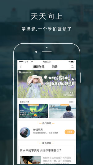 领域达人设立摄影系列产品课程内容,最具干货知识的网上摄影教育云平台,也有问答网站,每一个关键点都给你解释得一清二楚。