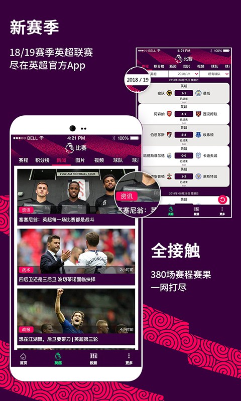 英超联赛每天都能提供现在最新的体育比赛信息,是站在中国粉丝们制作的高级转播平台,这里经常直接联系各种竞技场内外的新鲜信息,在这里可以掌握所有独家信息的同时,官方数据也可以直接在这里显示
