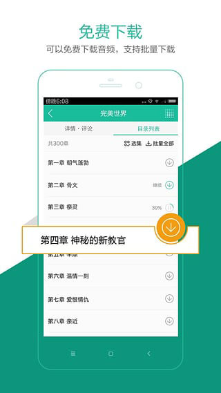 3.下载听力:懒汉免费下载所有书籍、节目,在房间、中途、外出时随时随地听。